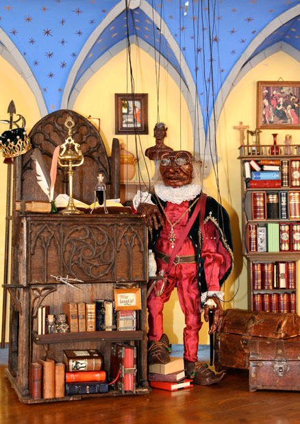 Er hat all diese zauberhaften Figuren (mein Favorit ist einwandfrei Prinz Udo) und das Theater mit samt der Kulissen selbst liebevoll gebaut und das wirklich lustige Stück und den Text geschrieben und einstudiert.